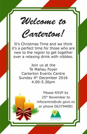 The Carterton District Council invites new residents to meet with others that have recently moved to the Carterton region.